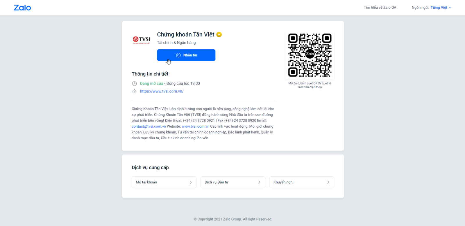 ► Kênh Zalo: Bạn vui lòng thực hiện theo màn hình hướng dẫn thao tác. Hoặc Quét mã QR tại đây