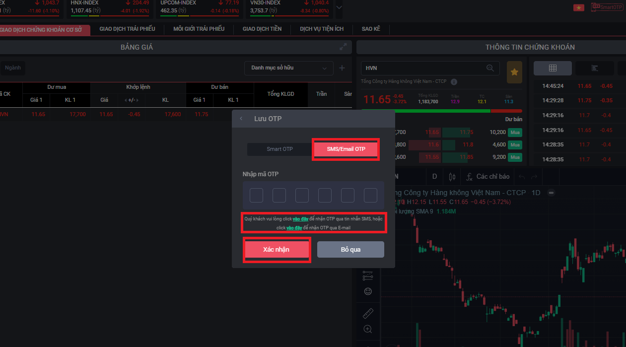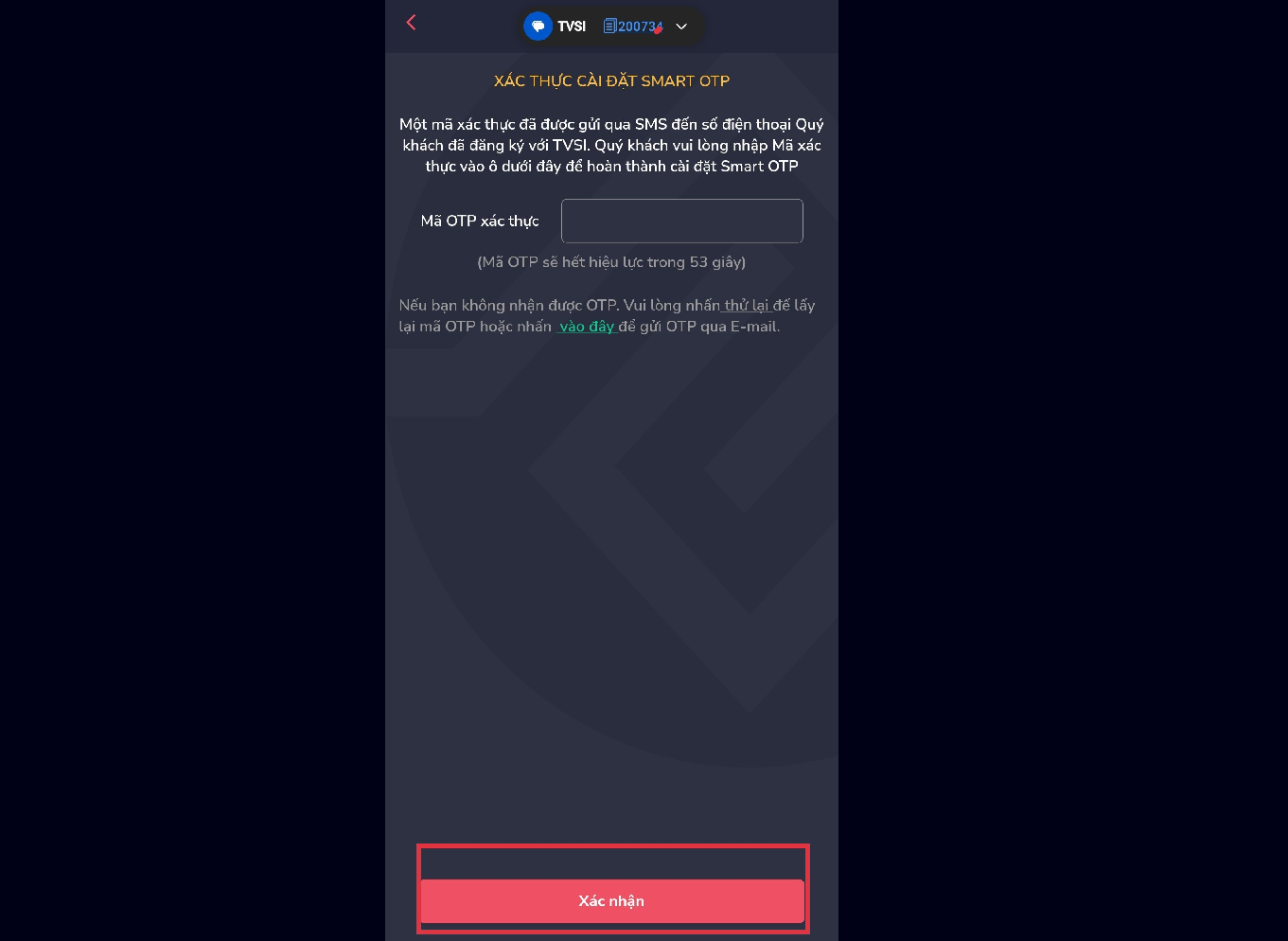 -> Nhập mã do TVSI gửi -> Chọn Xác nhận