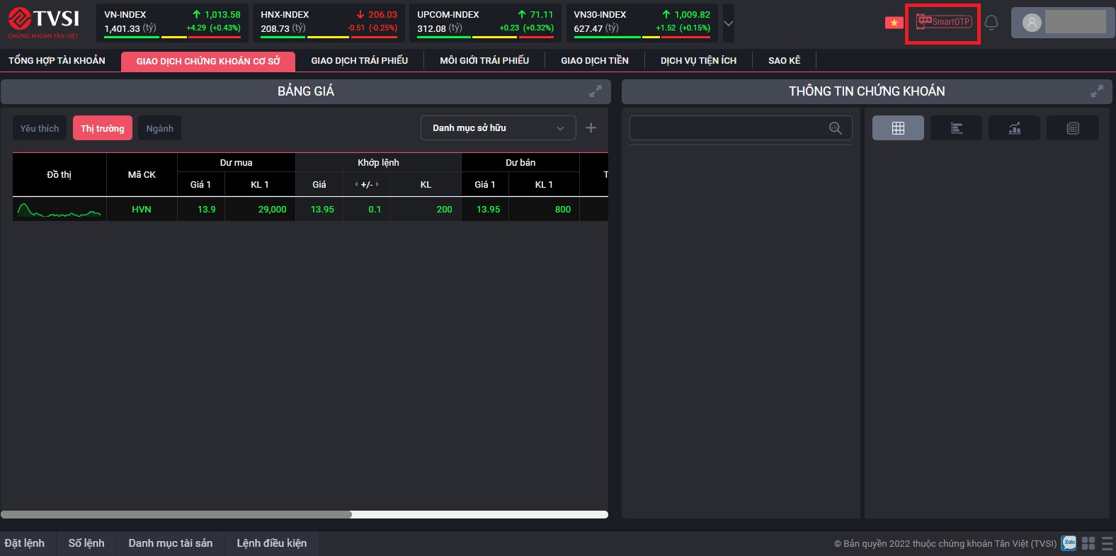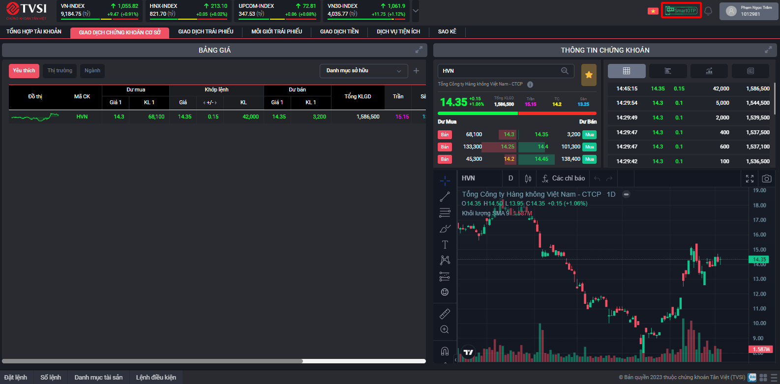 -> Thực hiện giao dịch đặt lệnh, chuyển tiền trong 01 phiên đăng nhập mà không cần nhập mã Smart OTP