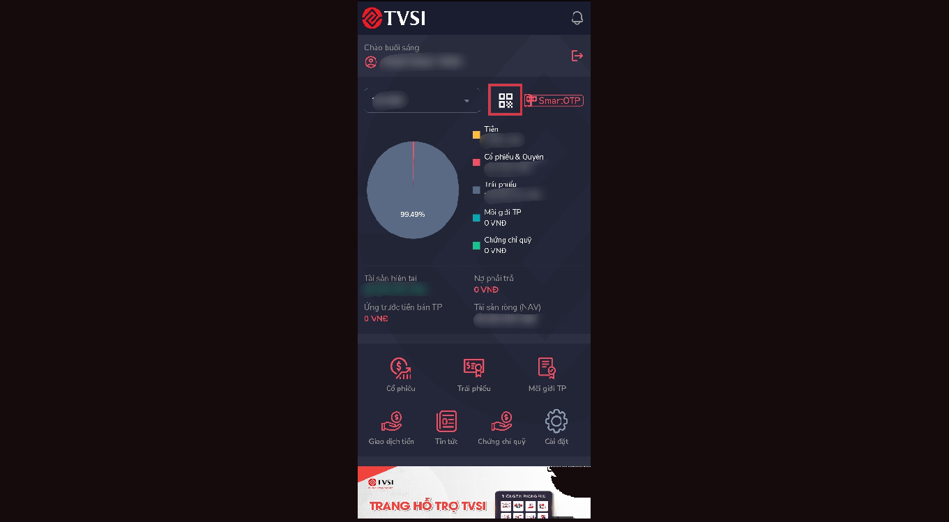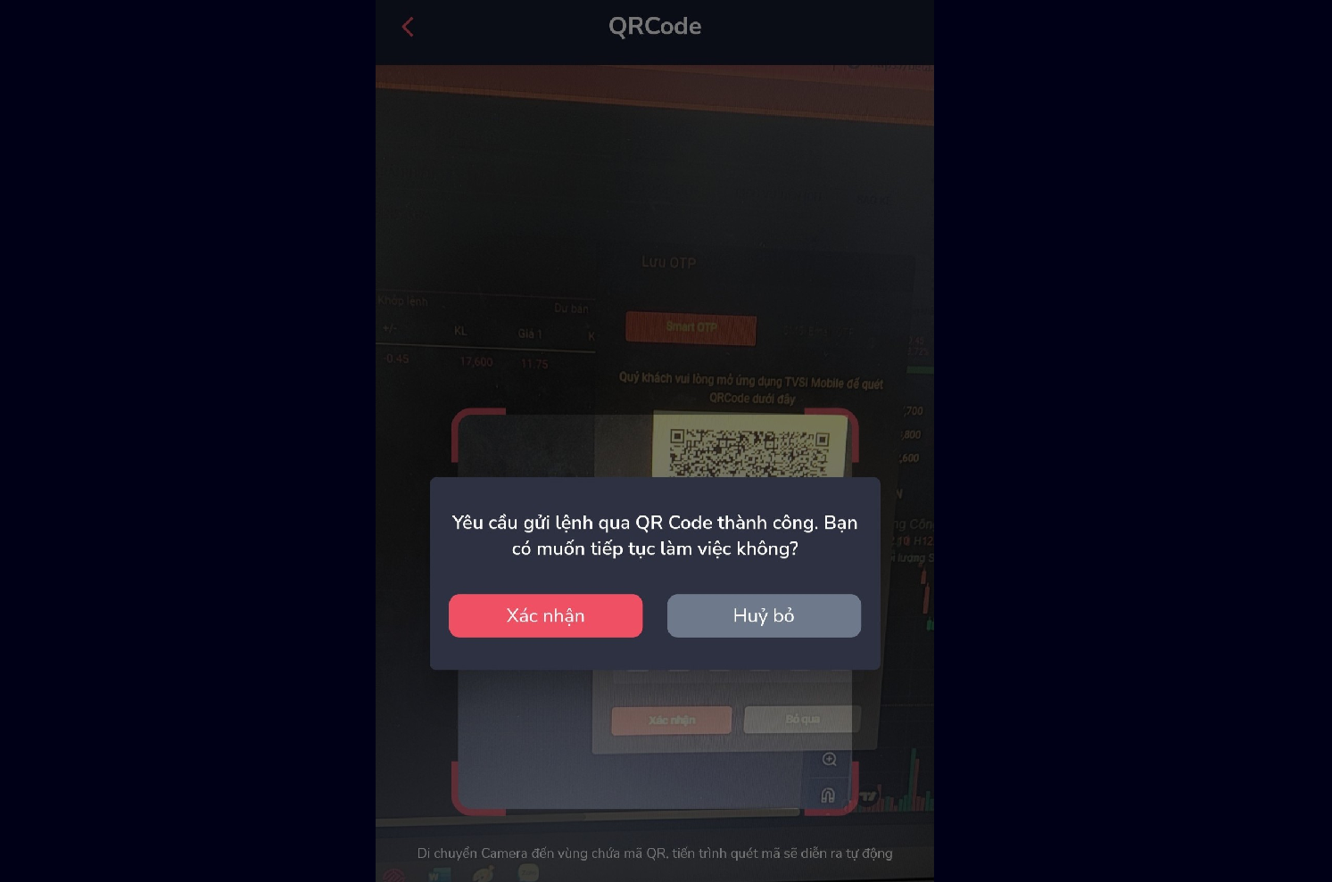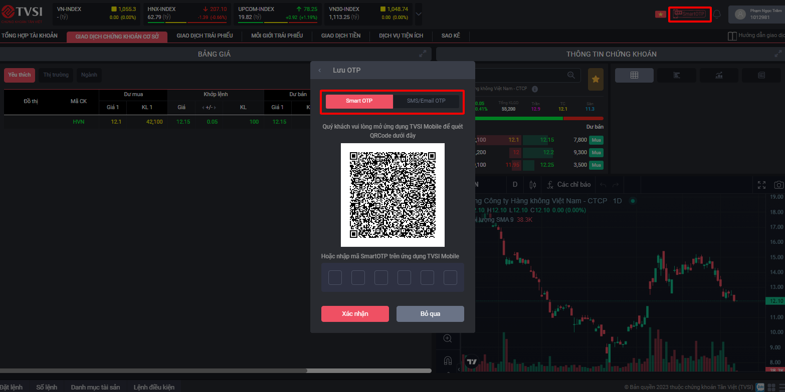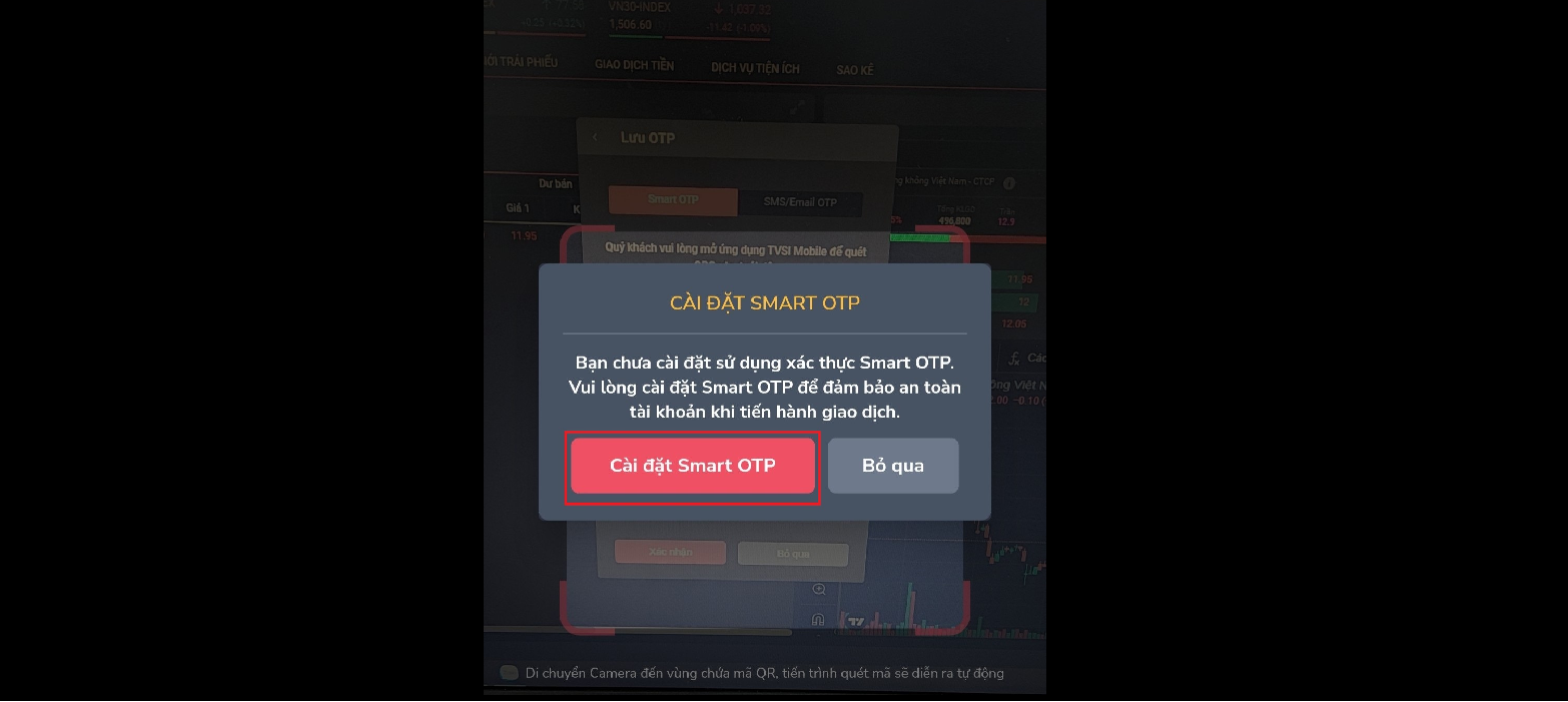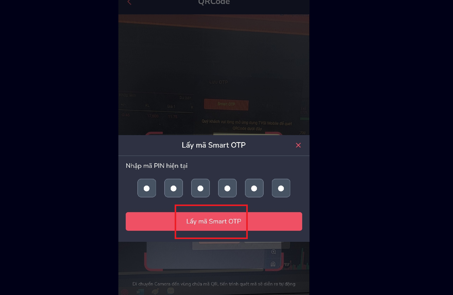 Cách 1: Chọn Smart OTP -> vào app TVSI Mobile trên thiết bị di dộng để quét QR Code