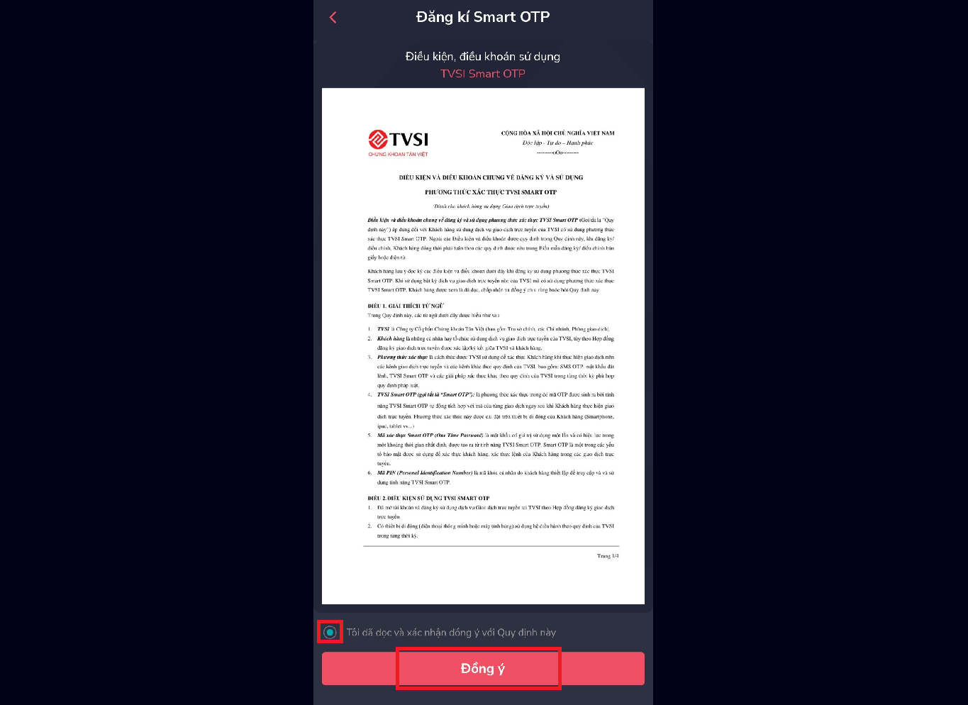 Chọn đồng ý các điều khoản -> chọn Đồng ý