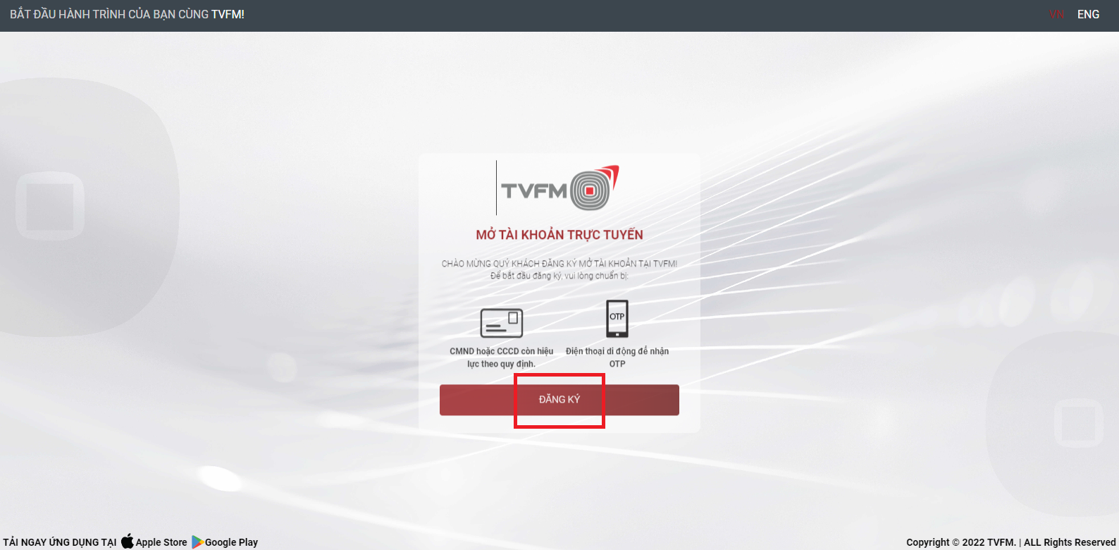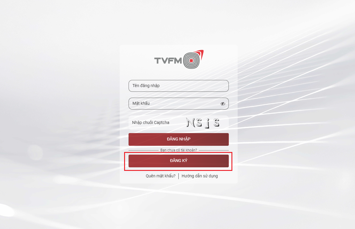Truy cập vào trang web TVFM -> chọn Đăng ký