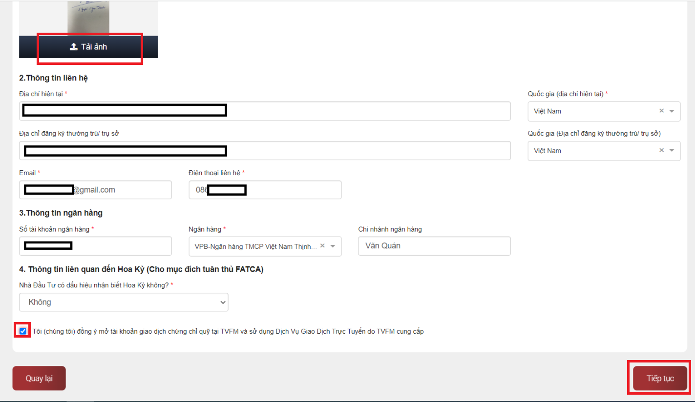 Tải ảnh Chữ ký, điền thông tin cá nhân