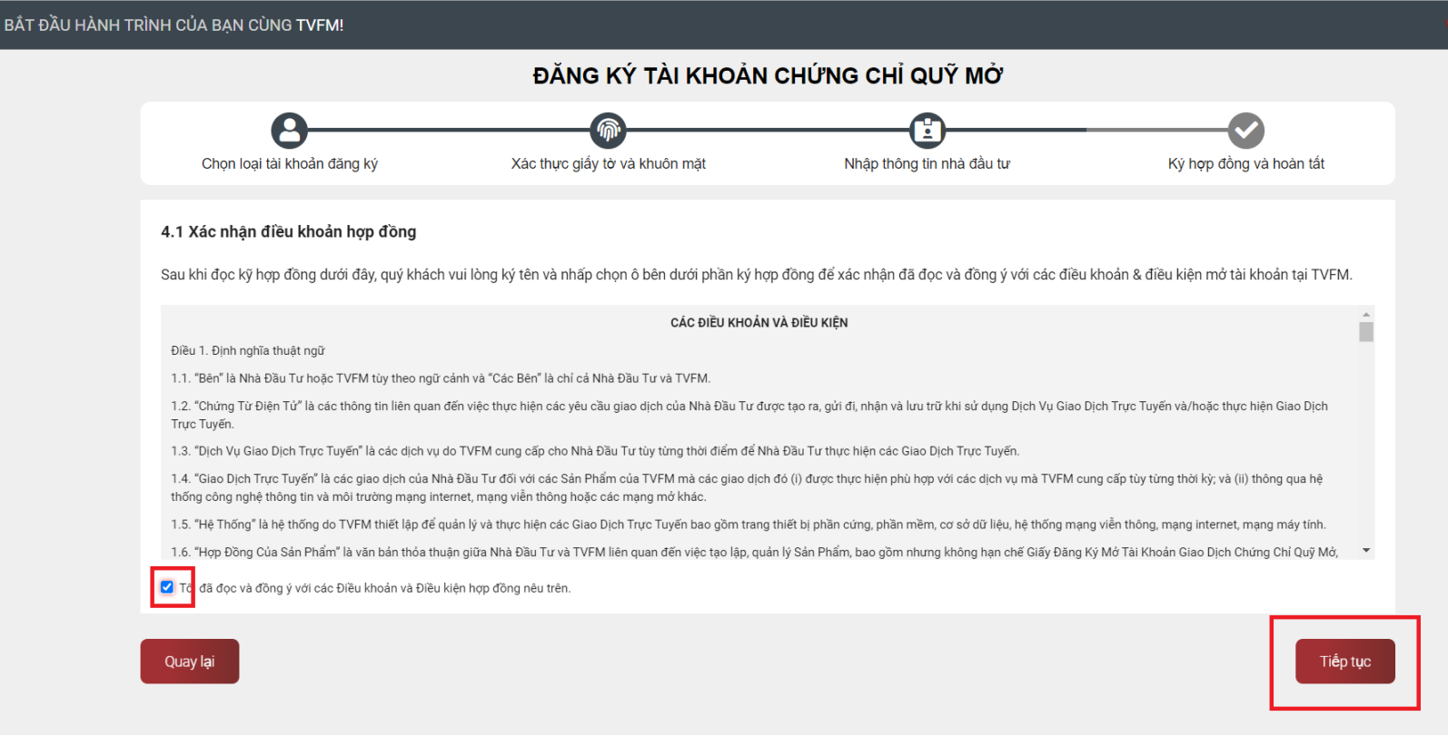 Tích chọn "Tôi đã đọc và đồng ý..."